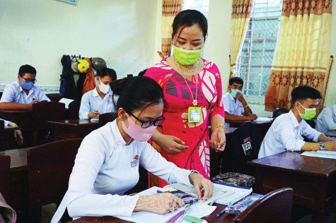 Trường THPT Cà Mau thực hiện chặt chẽ quy định phòng, chống dịch trong giờ học. |