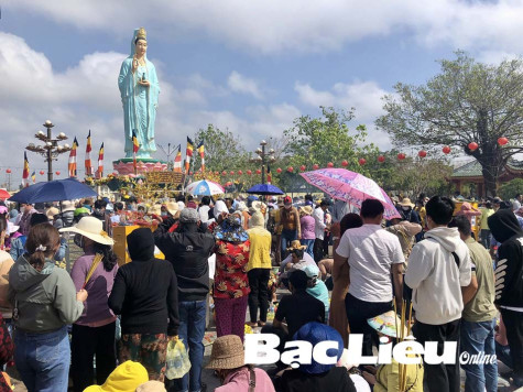 Du khách đến tham quan, chiêm bái tại khu Quán âm Phật đài. Ảnh: K.K