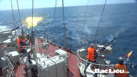 Tàu của Lữ đoàn 167 (Vùng 2 Hải quân) huấn luyện, bắn đạn thật trên biển.