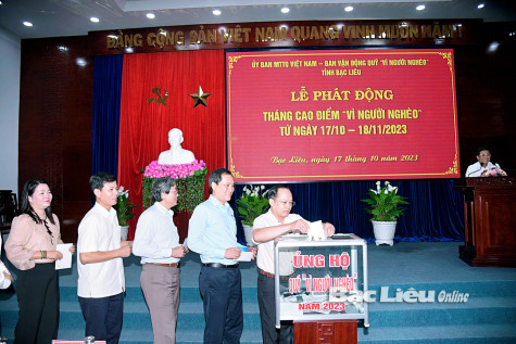 Song song đó, Mặt trận các cấp cũng đã phối hợp vận động các tổ chức thành viên, các tổ chức, cá nhân, nhà hảo tâm, cán bộ, công chức, viên chức, người lao động, lực lượng vũ trang, các tầng lớp nhân dân trong và ngoài tỉnh đóng góp Quỹ Vì người nghèo - An sinh xã hội. Cụ thể, năm 2022, Mặt trận các cấp đã vận động Quỹ được trên 24,3 tỷ đồng. Riêng năm 2023, Ủy ban MTTQ Việt Nam tỉnh đã tổ chức phát động Tháng cao điểm Vì người nghèo và đã nhận được sự đóng góp của nhiều tổ chức, đơn vị, doanh nghiệp, cá nhân hảo tâm tại buổi lễ là trên 8,3 tỷ đồng. Từ nguồn quỹ này sẽ giúp cho hàng ngàn hộ nghèo, cận nghèo của tỉnh về phương tiện làm ăn, về học nghề, cơ hội việc làm; hay hỗ trợ xây dựng nhà tình thương, nhà đại đoàn kết..., góp phần thực hiện mục tiêu giảm nghèo bền vững của tỉnh.