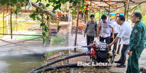 Vận hành máy phun nước phòng cháy, chữa cháy tại Vườn chim Bạc Liêu.
