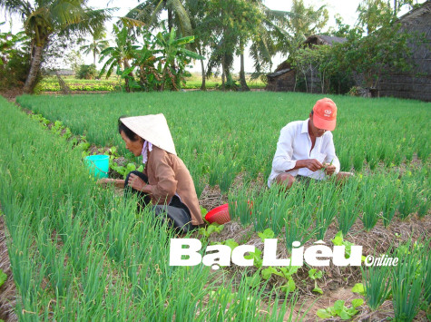 Nông dân xã Hiệp Thành thu hoạch rau màu. Ảnh: K.T