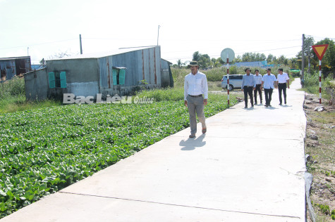 Đoàn cán bộ UBND TP. Bạc Liêu khảo sát Hợp tác xã nông nghiệp Đoàn kết (xã Hiệp Thành) - đơn vị được chọn xây dựng trở thành hợp tác xã điểm. Ảnh: N.Q