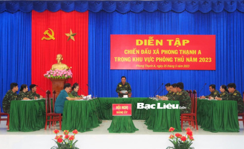 Sáng 25/5, tại hội trường Thị ủy Giá Rai, UBND xã Phong Thạnh A tổ chức diễn tập chiến đấu trong khu vực phòng thủ năm 2023. Dự và chỉ đạo diễn tập có đại diện Bộ Tham mưu Quân khu 9; lãnh đạo Bộ CHQS tỉnh cùng lãnh đạo thị xã Giá Rai.