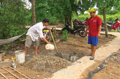 | Anh Võ Văn Bước (áo trắng) cần mẫn lao động, quyết tâm thoát nghèo. |