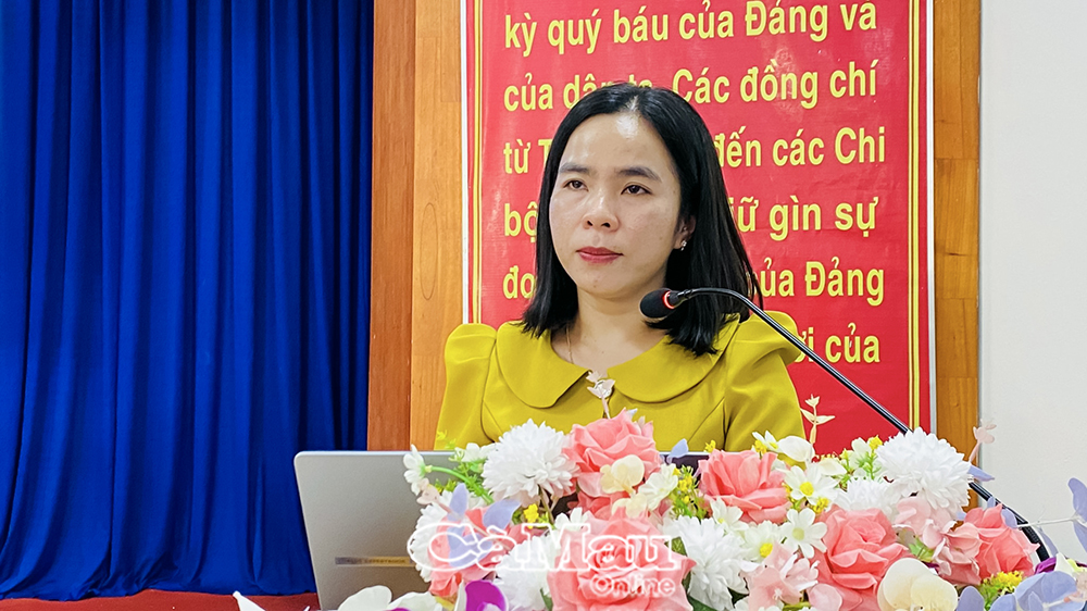 Đồng chí Ngô Diễm Phúc, Phó Bí thư Thường trực Đảng uỷ xã Trần Phán, báo cáo kết qủa thực hiện Nghị quyết của Đảng uỷ năm 2025.