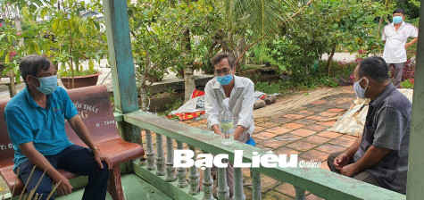 Các thành viên trong tổ COVID cộng đồng ấp Mỹ I (xã Vĩnh Phú Đông) đến thăm hỏi một gia đình vừa hoàn thành cách ly y tế. Ảnh: C.L