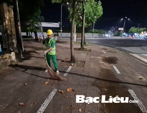 Hơn 22 giờ đêm, từng chập mưa lất phất cộng thêm cái lạnh đêm khuya thấm sâu vào từng thớ thịt, dòng xe và những mảnh đời mưu sinh nhanh chóng quay về nhà. Trên đường lúc này chỉ còn bóng dáng những người công nhân trong bộ trang phục bảo hộ lao động màu xanh đặc trưng cặm cụi quét dọn, làm sạch đường phố. Mặc cho mưa dông, gió lạnh, những tiếng chổi tre vẫn vang lên xào xạc trong đêm thanh vắng.