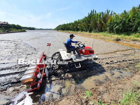 Sử dụng máy sạ lúa theo khóm sẽ giúp giảm chi phí đầu vào trong sản xuất nông nghiệp. Ảnh: C.L