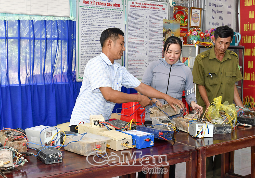 Khi chủ trương đi vào đời sống bằng những việc làm cụ thể thì lòng dân là minh chứng sinh động cho hiệu quả xây dựng Ðảng ở cơ sở. (Trong ảnh: Người dân xã Khánh Bình tự nguyện giao nộp các dụng cụ khai thác huỷ diệt nguồn lợi thuỷ sản).