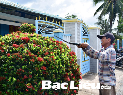 Tranh thủ những lúc rảnh rỗi, ông Trần Văn Tỷ (ấp Biển Đông A) lại chăm sóc, tạo dáng cho những cây xanh, hoa kiểng trước nhà. Thấy vậy, nhiều nhà xung quanh cũng thi nhau làm theo để cho “bằng chị bằng em”. “Hàng ngày, tôi đều dành thời gian chăm sóc, cắt tỉa cây xanh, vừa để giải khuây, vừa làm đẹp nhà, đẹp ngõ. Được góp một phần sức làm thay đổi cảnh quan nông thôn, tôi cũng thấy vui và tự hào”, ông Tỷ chia sẻ.