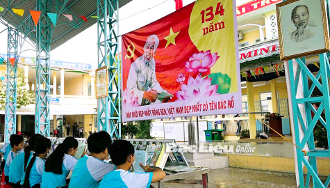 Trong dịp sinh nhật Bác năm nay, Thư viện tỉnh trưng bày 50 đầu sách chủ đề “Chủ tịch Hồ Chí Minh - Cuộc đời và sự nghiệp” tại trụ sở và phối hợp với Trường THCS Nguyễn Minh Nhựt (thị trấn Châu Hưng, huyện Vĩnh Lợi) trưng bày và xếp sách nghệ thuật (mô hình Bến Nhà Rồng, mô hình nhà sàn Bác Hồ) với 800 bản sách. Để bổ trợ cho hoạt động trưng bày sách, Ban Giám hiệu Trường THCS Nguyễn Minh Nhựt tổ chức biểu diễn văn nghệ, với phần lớn các tiết mục ca ngợi Bác và tình cảm của Bác đối với thiếu niên, nhi đồng ngay tại “sân khấu” đặc biệt này.