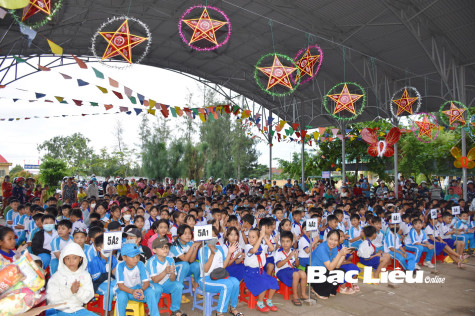 Tỉnh đoàn tổ chức chương trình vui tết Trung thu cho trẻ em xã ven biển. Ảnh: H.L