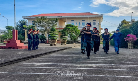 | Ban CHQS huyện duyệt binh rèn luyện tác phong bộ đội. |