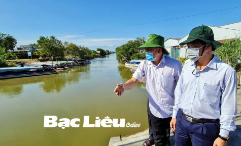 Lãnh đạo Sở NN&PTNT kiểm tra hệ thống cống ngăn mặn tại xã Hưng Hội (huyện Vĩnh Lợi).