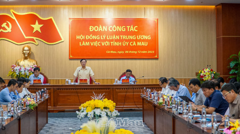 PGS. TS Phạm Văn Linh Phó chủ tịch Hội đồng Lý luận Trung ương, Trưởng đoàn công tác của Hội đồng Lý luận Trung ương, chia sẻ:“Văn hoá, xã hội, con người Cà Mau là tài nguyên quý giá, phong phú và hoàn toàn đủ khả năng trở thành nguồn lực đóng góp trực tiếp, đắc lực vào sự phát triển của địa phương. Cà Mau cần nhìn trúng vào những tồn tại, kịp thời tháo gỡ các vấn đề để xây dựng, phát triển văn hoá, xã hội, con người theo hướng hội nhập nhưng bền vững, giàu bản sắc, hình thành những chuẩn mực và hệ giá trị tốt đẹp, đặc biệt là từ đó mang lại sự thụ hưởng thực sự, thực chất và toàn diện cho đời sống Nhân dân”. Phó bí thư Thường trực Tỉnh uỷ Phạm Thành Ngại tiếp và làm việc với đoàn.