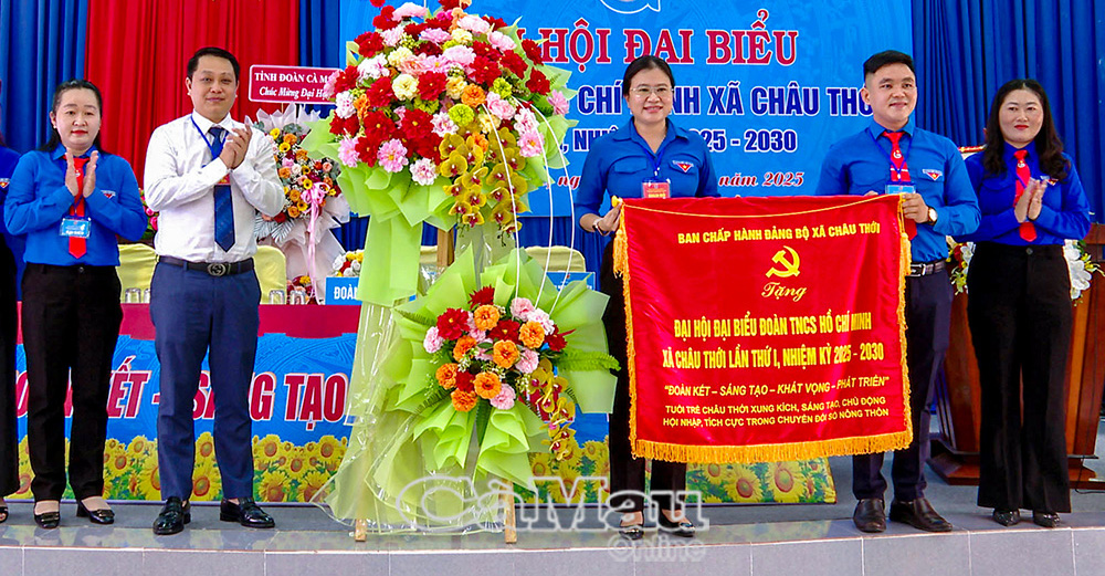 Chiều 24/10, Đoàn TNCS Hồ Chí Minh xã Châu Thới long trọng tổ chức Đại hội đại biểu lần thứ I, nhiệm kỳ 2025-2030. Dự Đại hội có Phó Bí thư Tỉnh đoàn Cà Mau Nguyễn Trang Anh Thư, cùng 120 đại biểu chính thức đại diện cho ý chí, khát vọng và quyết tâm của 891 đoàn viên trên địa bàn xã.
