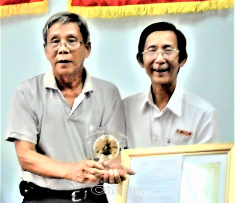 | Ông Trần Văn Việt (Hai Dũng) thừa uỷ quyền của Chủ tịch UBND tỉnh trao bằng khen UBND tỉnh cho ông Lý Nam Hải về thành tích hỗ trợ xây nhà cho cựu TNXP Cà Mau năm 2012. Ảnh: NGUYỄN TRUNG TÍNH |