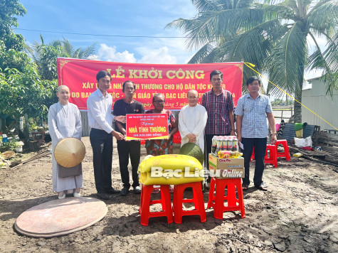 Chiều 24/5, Ban Dân tộc và Tôn giáo tỉnh phối hợp với huyện Hòa Bình tổ chức lễ khởi công xây dựng nhà ở cho hộ dân tộc Khmer.
