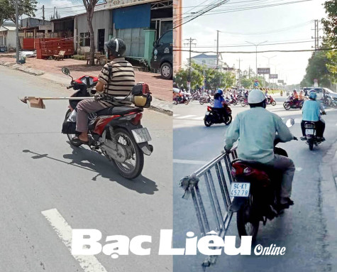 Đó là các máy cắt cỏ, thang sắt hoặc các cây gỗ dài, kiếng nhọn… Việc chở theo các vật này chi phối khả năng lái xe của người điều khiển phương tiện (một tay cầm vật, một tay lái xe), mặt khác có thể gây mất an toàn cho những người cùng lưu thông.