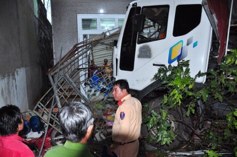 Chị Nguyễn Thị Huyền cho biết: "Trước khi chiếc xe tải đâm vào, gia đình đang ở phía trước ngôi nhà, nhưng may mắn đứa con gái chạy ra phía sau nhà nên tôi chạy theo. Vừa chạy vào thì chiếc xe tải đâm vào vị trí cách chỗ đứa con trai đang ngồi học khoảng 2 m. Nhờ vậy mà cả gia đình không ai bị thương. Hiện, toàn bộ hàng rào, cửa và 2 chiếc xe máy bị hư hỏng hoàn toàn. Gia đình chưa thống kê được mức thiệt hại".