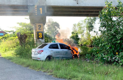 (CMO) Vào khoảng 9 giờ sáng 4/6, đang chạy trên tuyến đường Xuyên Á hướng về Cà Mau, đến gần dốc cầu Thị Phụng (xã Hồ Thị Kỷ, huyện Thới Bình), xe Taxi Cà Mau mang biển số 69A – 03975 đột nhiên bốc cháy.