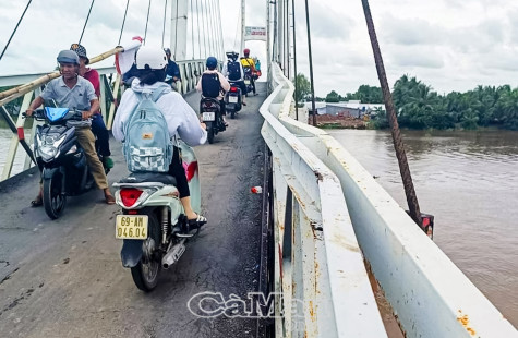 Một chiếc xe chở hàng vượt tải trọng cầu khi di chuyển qua cầu Rạch Ráng (huyện Trần Văn Thời) đã gây hư hại cầu, đơn vị quản lý công trình phải cho tạm ngưng lưu thông xe ô tô qua đây để đảm bảo an toàn.
