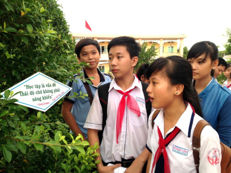 Giờ ngoại khoá của học sinh trường THCS xã Hàng Vịnh, huyện Năm Căn. |