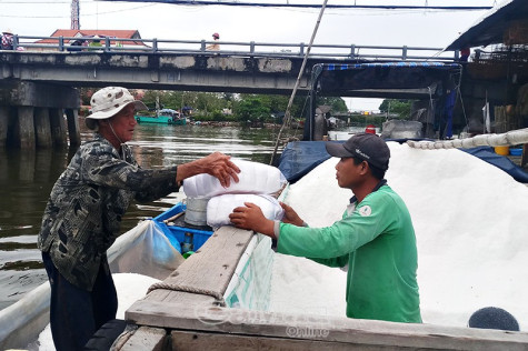(CMO) Ghe bà Chín (Nguyễn Thị Thuỷ, 58 tuổi, ngụ tỉnh Đồng Tháp) vừa cập chợ, không đợi con trai kéo dây cột vào cọc, bà Chín phóng lên bờ, rảo bước vào các bạn hàng, họ là chủ buôn các tiệm tạp hoá, hay những hộ vựa muối để bán lại.