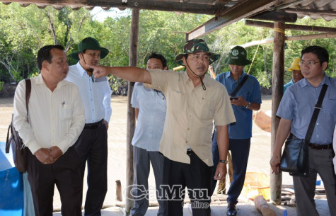 | Chủ tịch UBND tỉnh Nguyễn Tiến Hải kiểm tra và chỉ đạo chấn chỉnh việc lấn chiếm lòng sông để kinh doanh, sản xuất của người dân Đất Mũi, huyện Ngọc Hiển. |