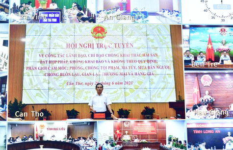 (CMO) Chiều 28/6, Phó Thủ tướng Chính phủ Trần Lưu Quang có buổi họp trực tuyến với các tỉnh ĐBSCL về công tác phòng, chống tội phạm; phòng, chống ma túy; phòng, chống mua bán người; phòng, chống buôn lậu, gian lận thương mại và hàng giả; chống khai thác hải sản bất hợp pháp, không báo cáo và không theo quy định (IUU). Ông Lê Văn Sử, Phó chủ tịch UBND tỉnh, chủ trì tại điểm cầu Cà Mau.