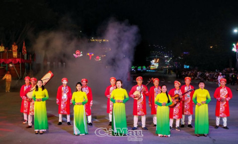 | Phần diễu hành của Ðoàn Cải lương Hương Tràm Cà Mau tại lễ hội đường phố “Hành trình theo miền di sản” (nằm trong chuỗi hoạt động Festival Ninh Bình 2022 - Tràng An kết nối di sản) tạo ấn tượng rất đẹp với công chúng trong nước và bạn bè quốc tế. |