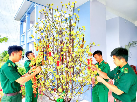 | Cán bộ, chiến sĩ Ðồn Biên phòng Khánh Hội trang trí doanh trại, chuẩn bị đón xuân Quý Mão 2023. |