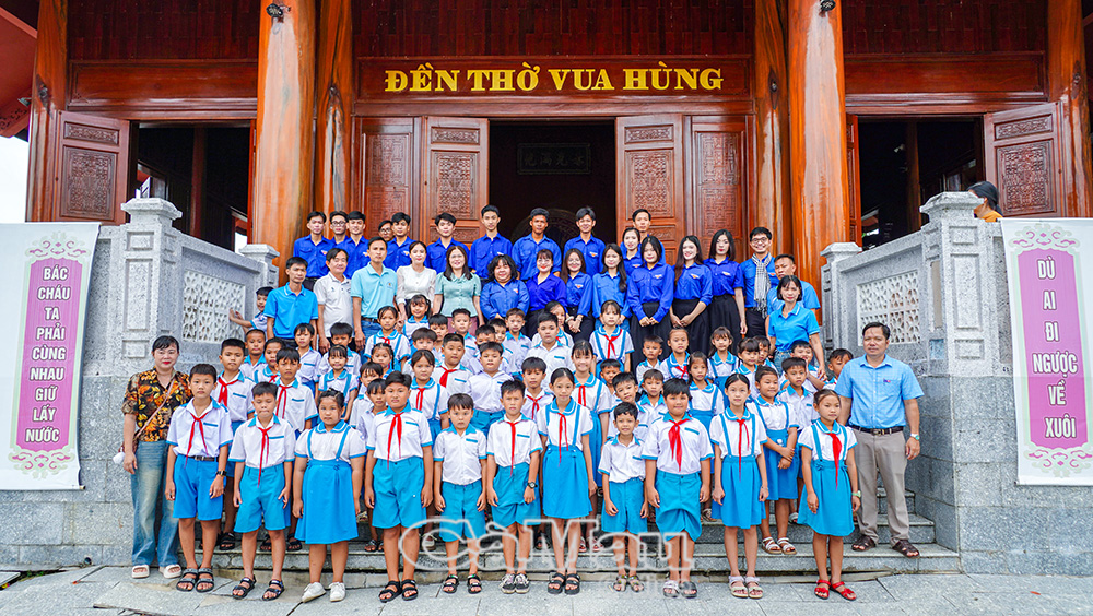 Trước khi tham dự chương trình, các em học sinh được tham quan Đền thờ Vua Hùng, tìm hiểu truyền thống lịch sử và bày tỏ lòng tri ân cội nguồn dân tộc.