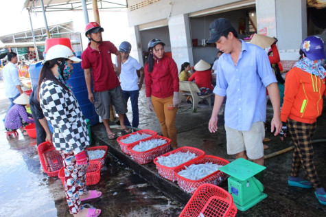 | Chỉ trong buổi sáng, vựa cá, mực Duy Phương đã cân được 2 tấn mực. |