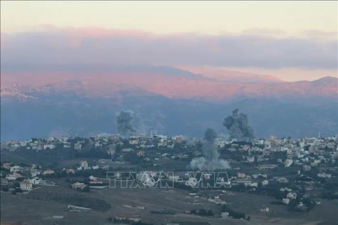 Khói bốc lên sau các vụ không kích của Israel tại khu vực biên giới ở Đông Nam Lebanon.