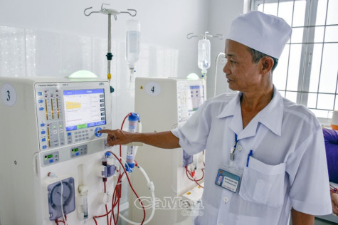 | Bệnh viện Ða khoa Cái Nước triển khai máy lọc thận nhân tạo, giúp bệnh nhân tiết kiệm thời gian, chi phí điều trị bệnh khi không phải chuyển lên tuyến trên. |