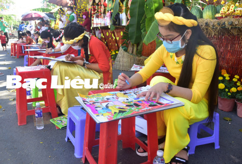 Thiếu nhi TP. Bạc Liêu tham gia vẽ tranh mừng xuân, tuyên truyền phòng chống dịch COVID-19. Ảnh minh họa: Đ.K.C