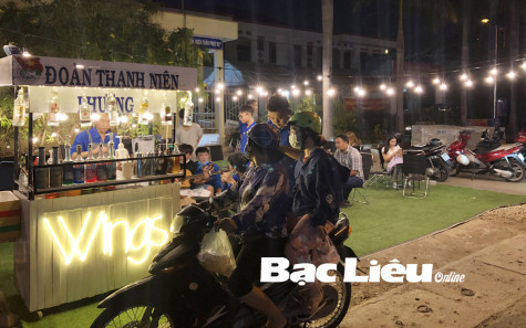 Cũng tương tự với phong cách của quán Wings, trên tuyến đường Lê Duẩn, Trần Huỳnh (TP. Bạc Liêu) cũng xuất hiện khá nhiều quán như thế. Không đòi hỏi nhiều vốn đầu tư, chỉ cần một chiếc xe nhỏ, vài bộ bàn ghế bằng gỗ, sắt, hay tận dụng những chiếc thùng làm bằng nhựa đã qua sử dụng, kết hợp với một vài dụng cụ trang trí như bóng đèn, màu sơn… nhiều bạn trẻ đã tạo nên một loại hình kinh doanh mới mà trước đây chỉ xuất hiện ở các thành phố lớn - kinh doanh ẩm thực đường phố. Dạo một vòng quanh các quán theo kiểu này vào buổi tối, chúng ta sẽ thấy lượng khách khá đông, chủ yếu là giới trẻ. Bạn Mỹ Hạnh (Phường 7, TP. Bạc Liêu) bày tỏ: “Tôi rất thích các quán kiểu ngồi ngoài trời, nó vừa mát mẻ, vừa thoải mái. Đi làm cả ngày ngồi trong phòng máy lạnh nên buổi tối tôi và nhóm bạn của mình thường hẹn nhau ở các quán có không gian mở như thế này để ăn vặt, trò chuyện xả stress”.